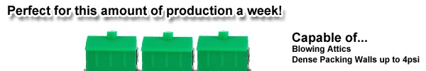 This machine is capable of installing 6” of cellulose and fiberglass in a 1,500 sq ft area in only 1 hour (950 lbs/hour). With a 13.7 amp, 3-stage blower running off a 15amp power supply, you will find ample power to run this unit. A 150 ft. remote cord is included. This machine is not only capable of insulating attics, it can dense pack. It provides up to 4 PSI. The unit weighs 175 lbs.