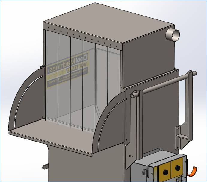 - Cellulose Hopper Extension: Cool Machines developed hopper extensions with vinyl curtains to help keep the dust down when loading the hopper.