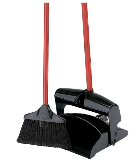 - A broom like this or a whisk broom is very helpful when you have a generously-sized dustpan that will close when lifted up.