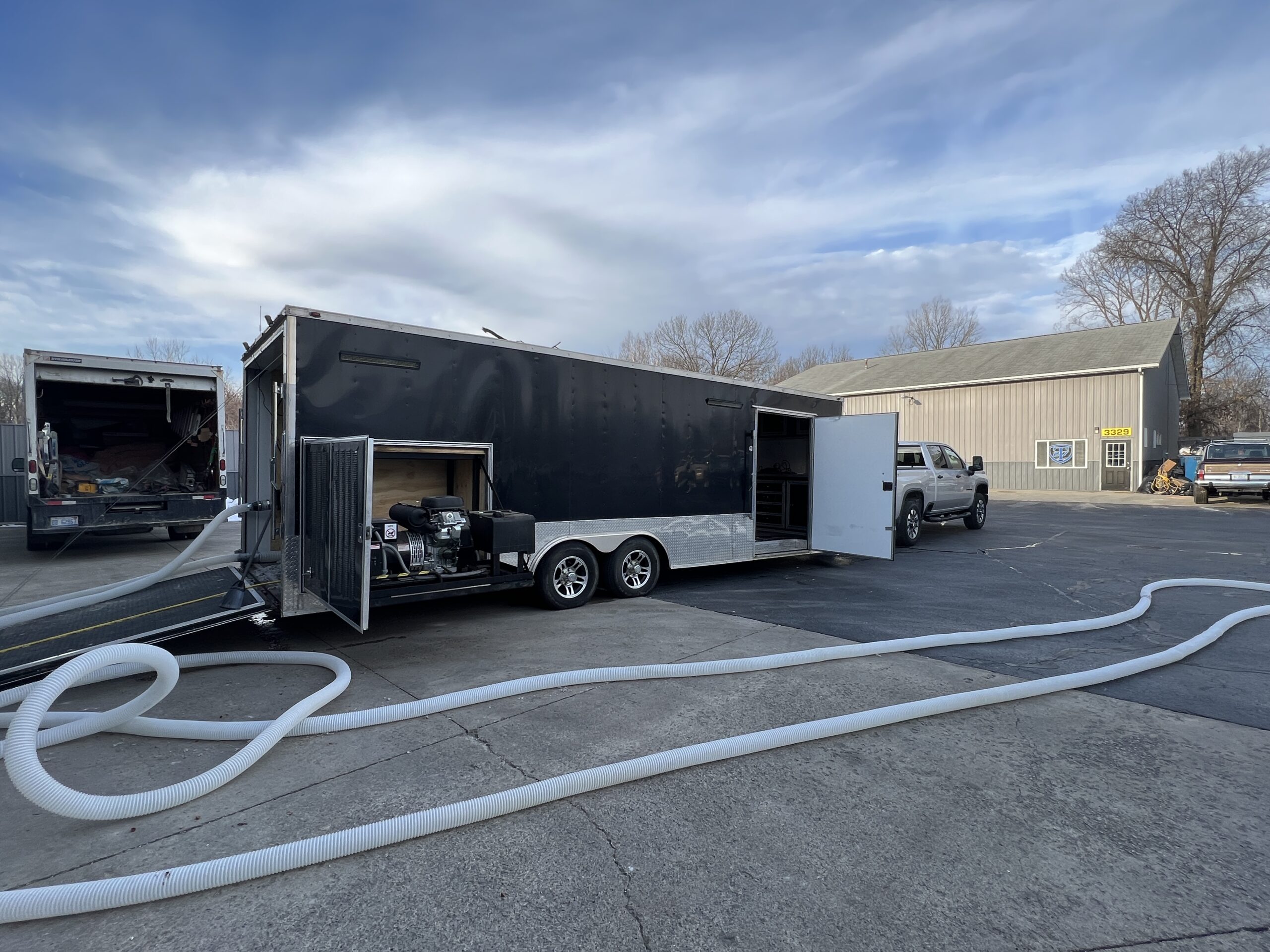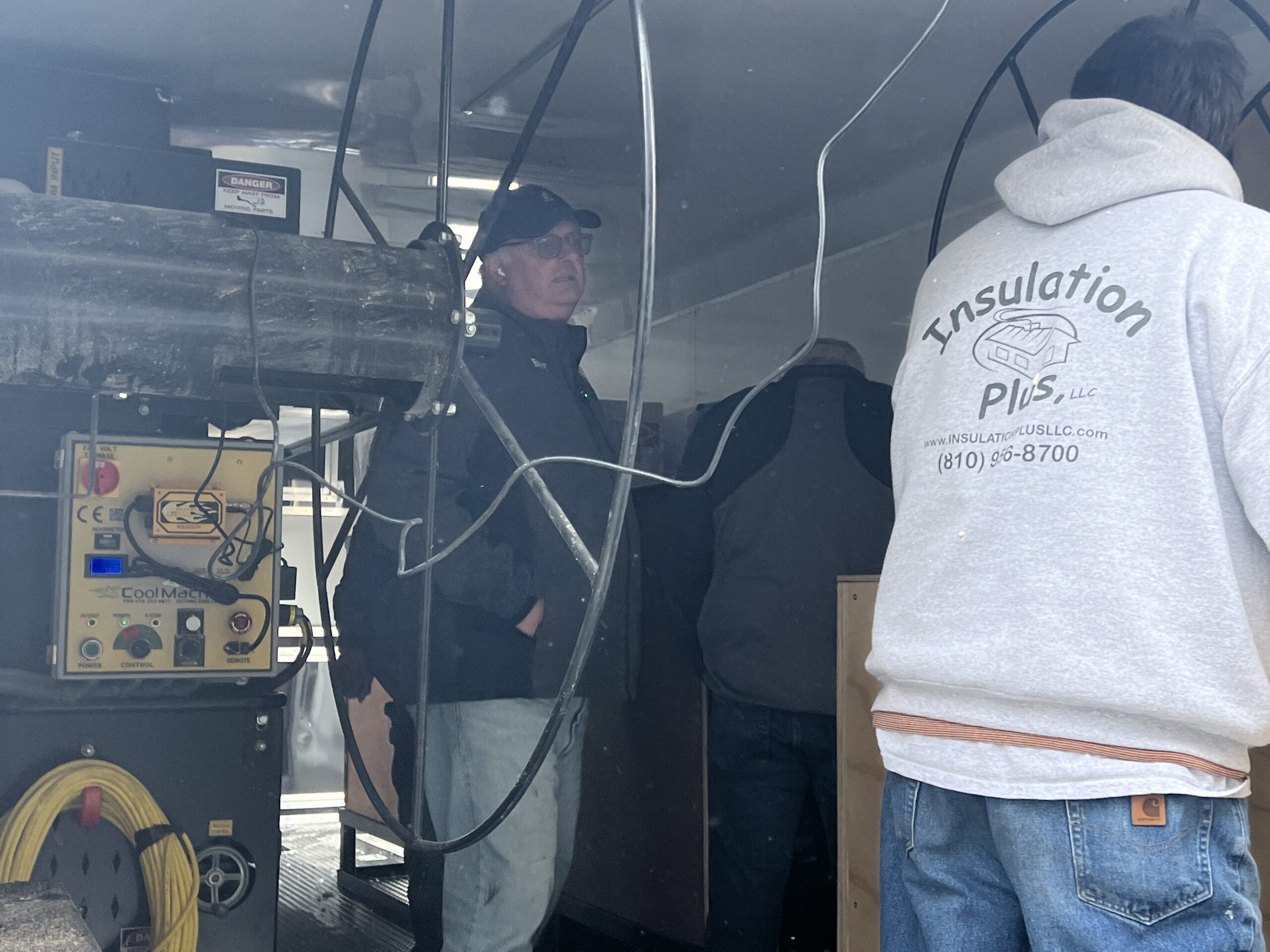 A race car trailer makes for an awesome insulation machine setup… only one downside. We visited Lance and his crew in Port Huron, Michigan. They recently purchased a slightly used wall spray setup. The machine sat for a couple of years as the previous owner turned his attention to spray foam.