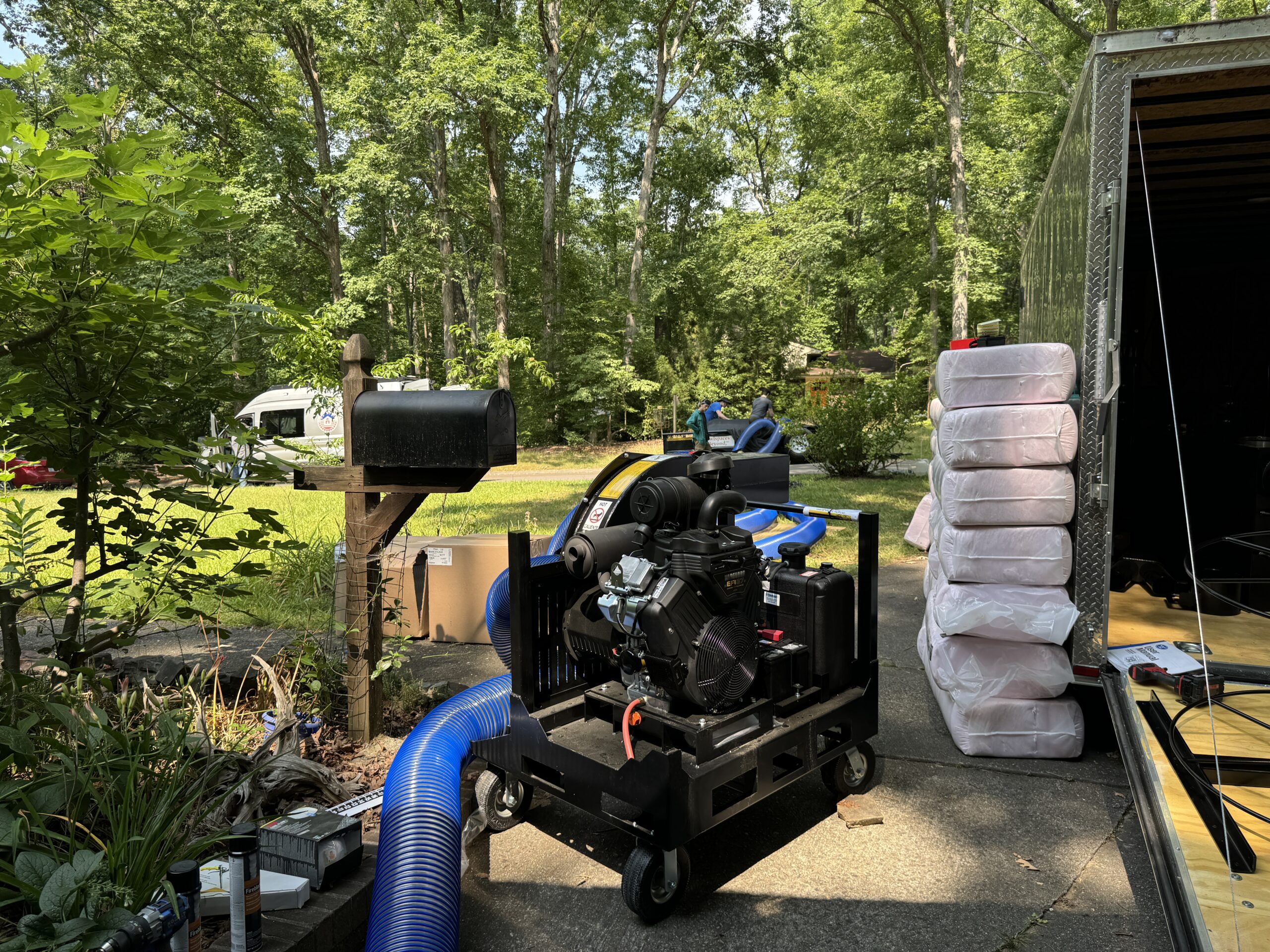 The CoolVac37 vacuum being used to extract fiberglass from a 2,800 sq ft house.