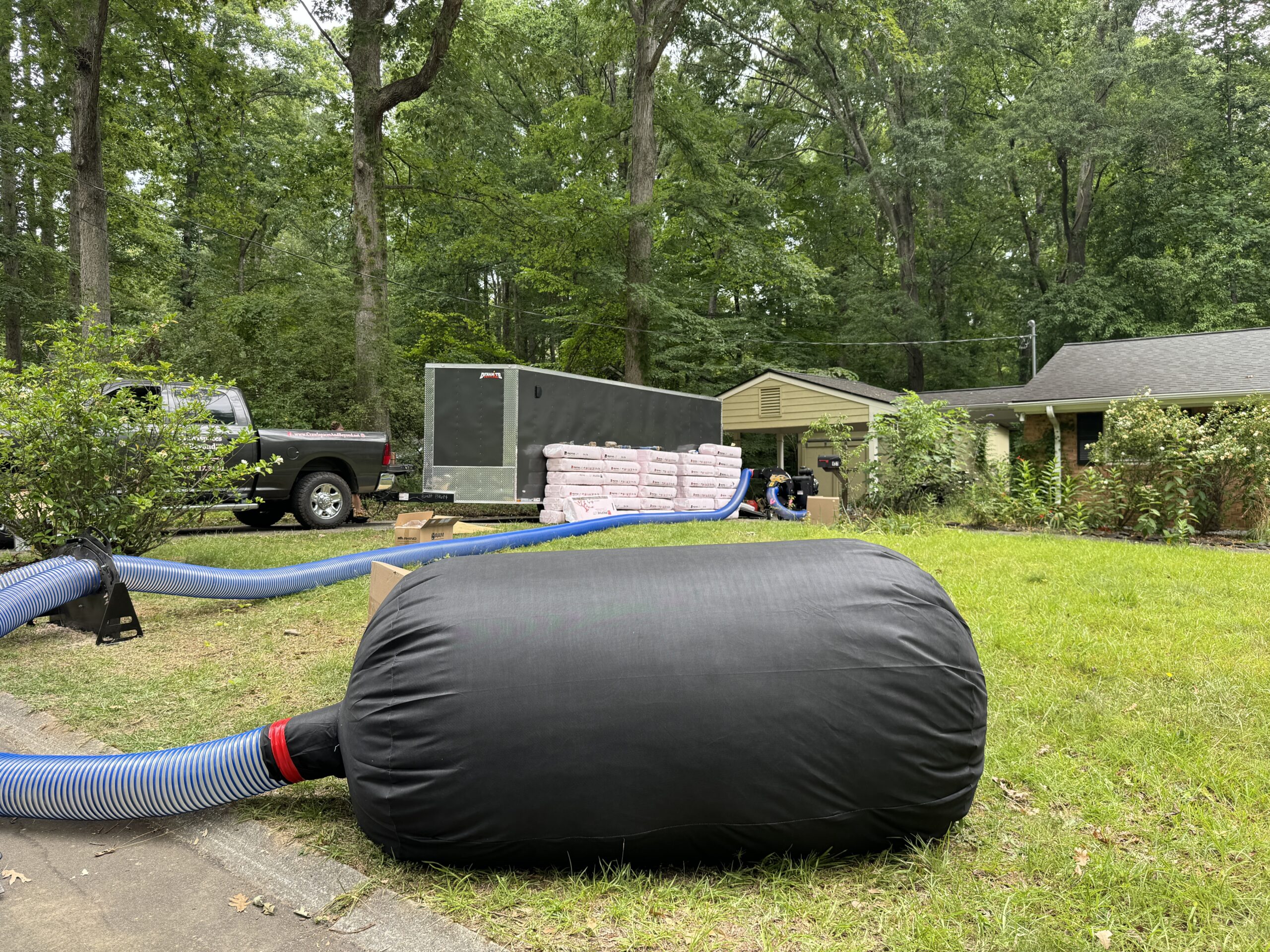 We met with Dylan and his crew in Cary, North Carolina. We started the day by going over safety procedures and best practices to be as efficient as possible. After assigning tasks to the crew, we began extracting insulation from the attic. The insulation was compromised by moisture and some pests. After removing the insulation, Dylan treated the attic with an antibacterial. Then they put fiberglass back into the house with their new blower.