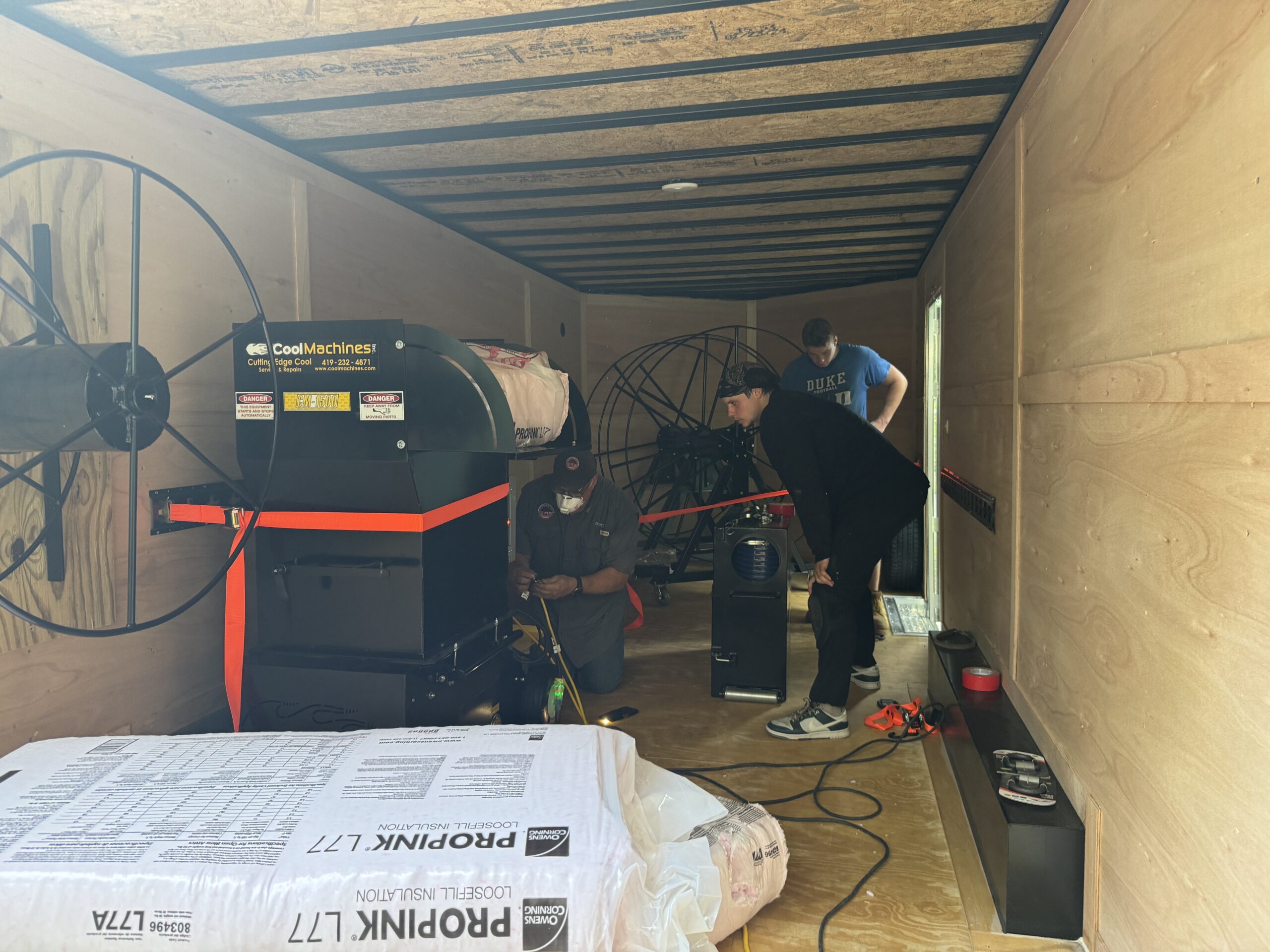 Dylan follows us on social media and has considered adding whole house insulation to his services. He purchased a CoolVac37 which certainly removes insulation from attics, but also a perfect vacuum to remove fiberglass batts in the crawlspace. He also purchased a CM1500HP to reinsulate the attics as well.