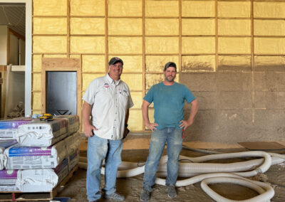First, he hired a spray foam company to insulate the odd wall structure. The wall structure is not odd for a barn, but it is odd when it comes to finding insulation material. Nathan was curious to insulate the rest of his barn with wall spray cellulose. So, we guided him through a purchase. We recommended: