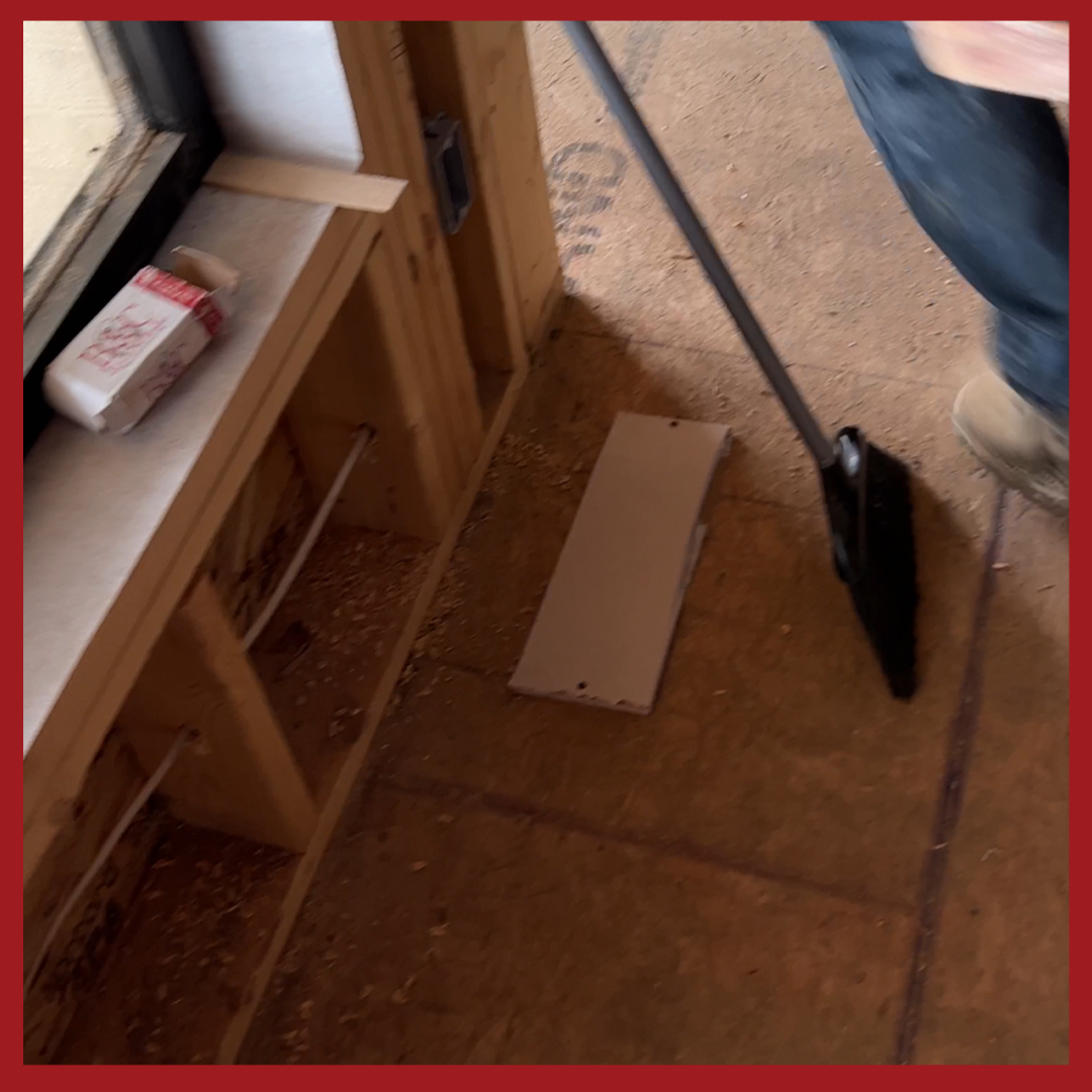 We highly encourage the practice of leaving a worksite in better condition than you arrived. Builders and homeowners expect their projects to be clean. Before we began to work, we covered the duct openings with pieces of drywall to prevent debris/fiberglass from getting into the new duct work. We left those in place since other trades (drywall, mudders, painters, trim guys, electricians and plumbers) will follow. Then we swept the house. You want to sweep at least the perimeters of the rooms so you can scoop up and recycle material that gathers on the floor.