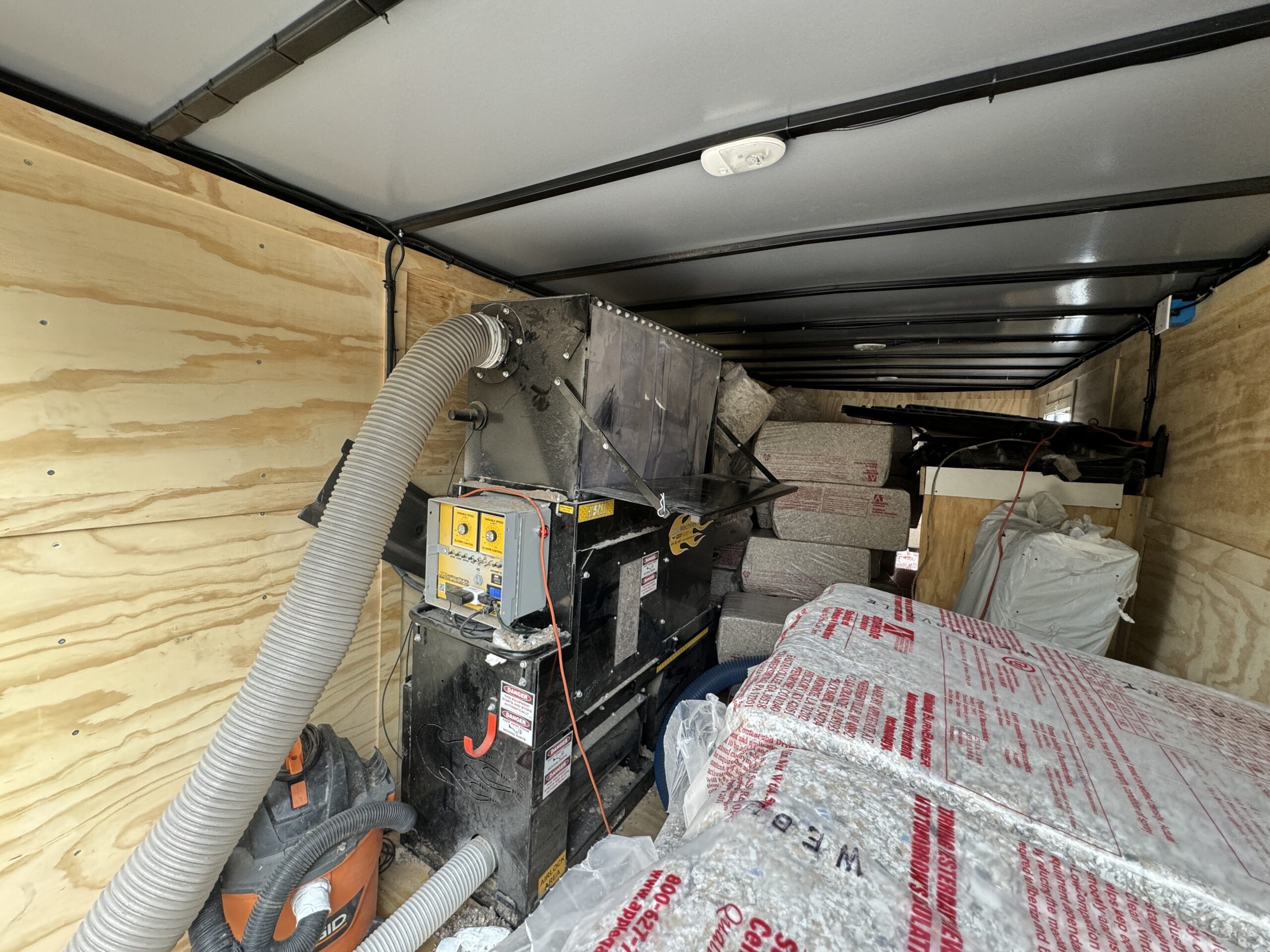 They already owned a small, portable blower and vacuum. They other trailer was setup for spray foam. Their current set-up did not have the capabilities to do wall spray cellulose, so they reached out to us.