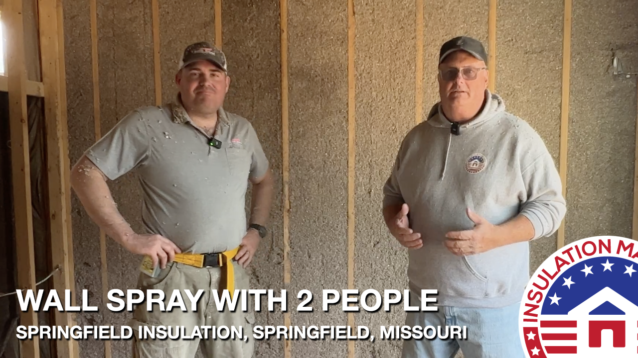 Caleb Nix of Springfield Insulation (Springfield, Missouri) recently purchased a CM2400 with a wall spray system. We visited with Caleb and Dave (his employee). The challenge of the day was to teach on wall spray cellulose with only two people, using the manual recycling approach. The day went very well. We do have a few customers who are two-men team that spray and recycle. Here is how they accomplished this.