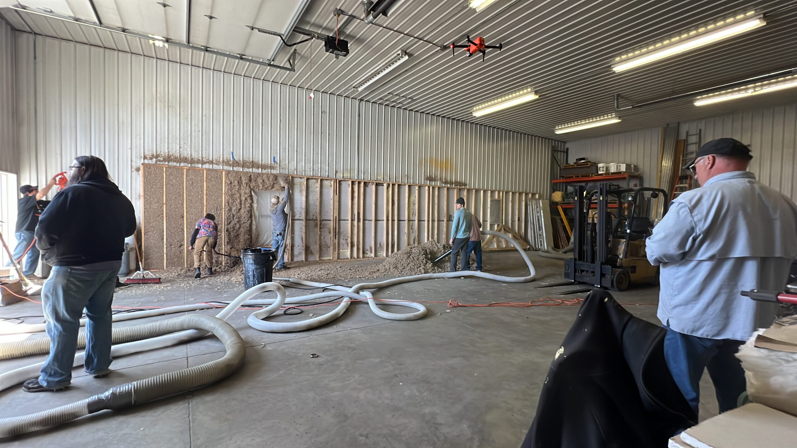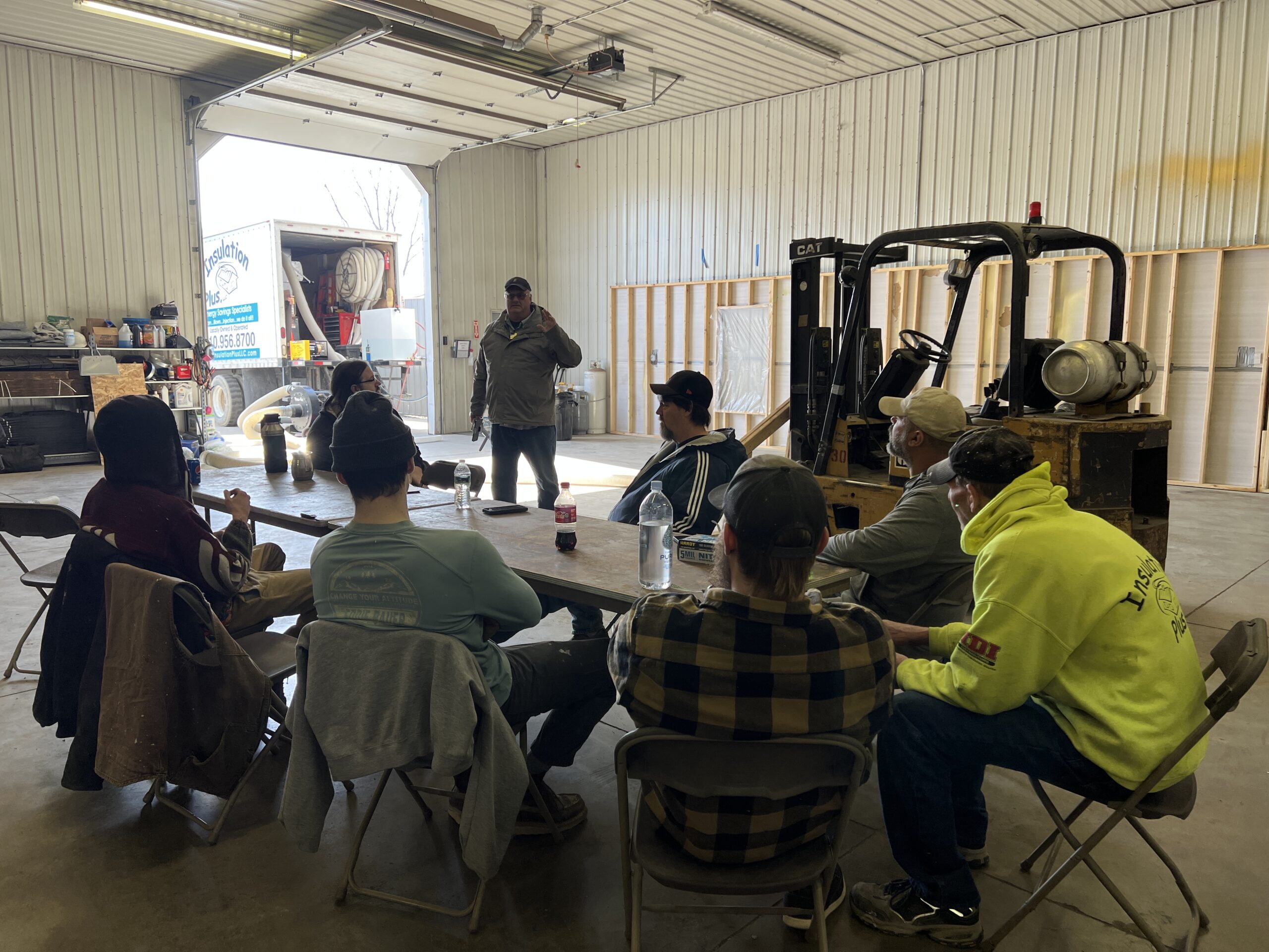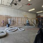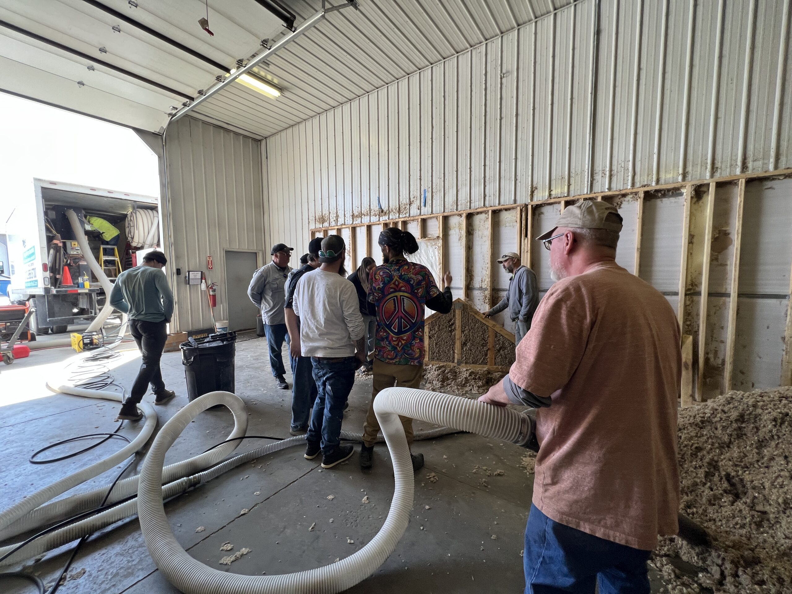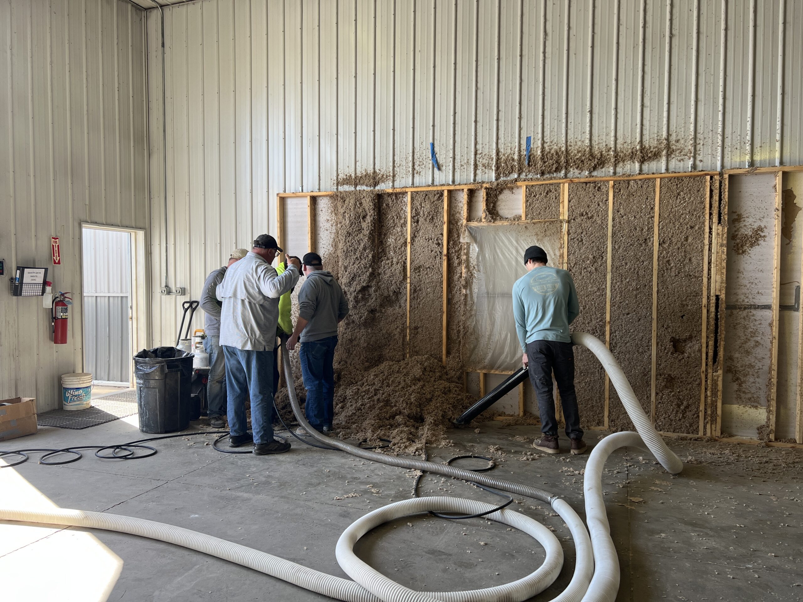 In May, we visited Lance and his crew. They have an impressive facility with a skilled crew. After an hour of setup and training, we were spraying wall spray cellulose with low moisture content. The hopper extension made the recycling chore a breeze! Within three hours, this crew was trained and ready to spray!